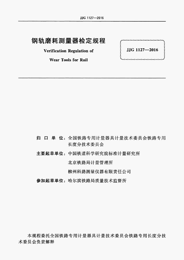 中国铁道科学研究院标准计量研究所、北京铁路局计量管理所、柳州科路测量仪器有限责任公司、哈尔滨铁路局质量技术监督所