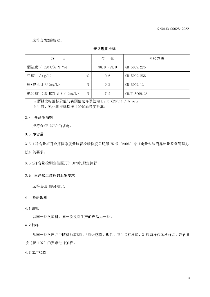 Q/XHJC 0002S-2022 人参虫草酒(配制酒)
