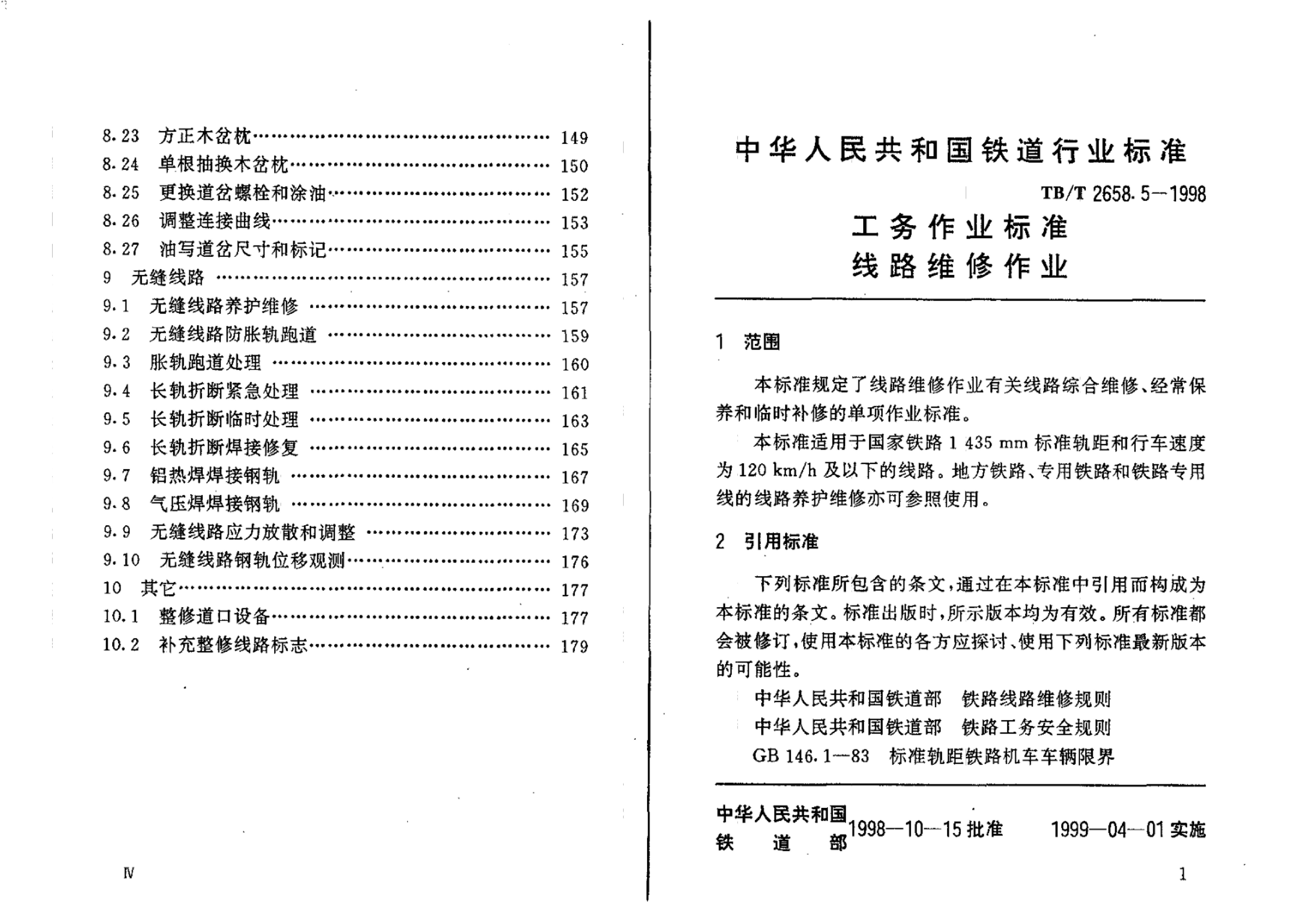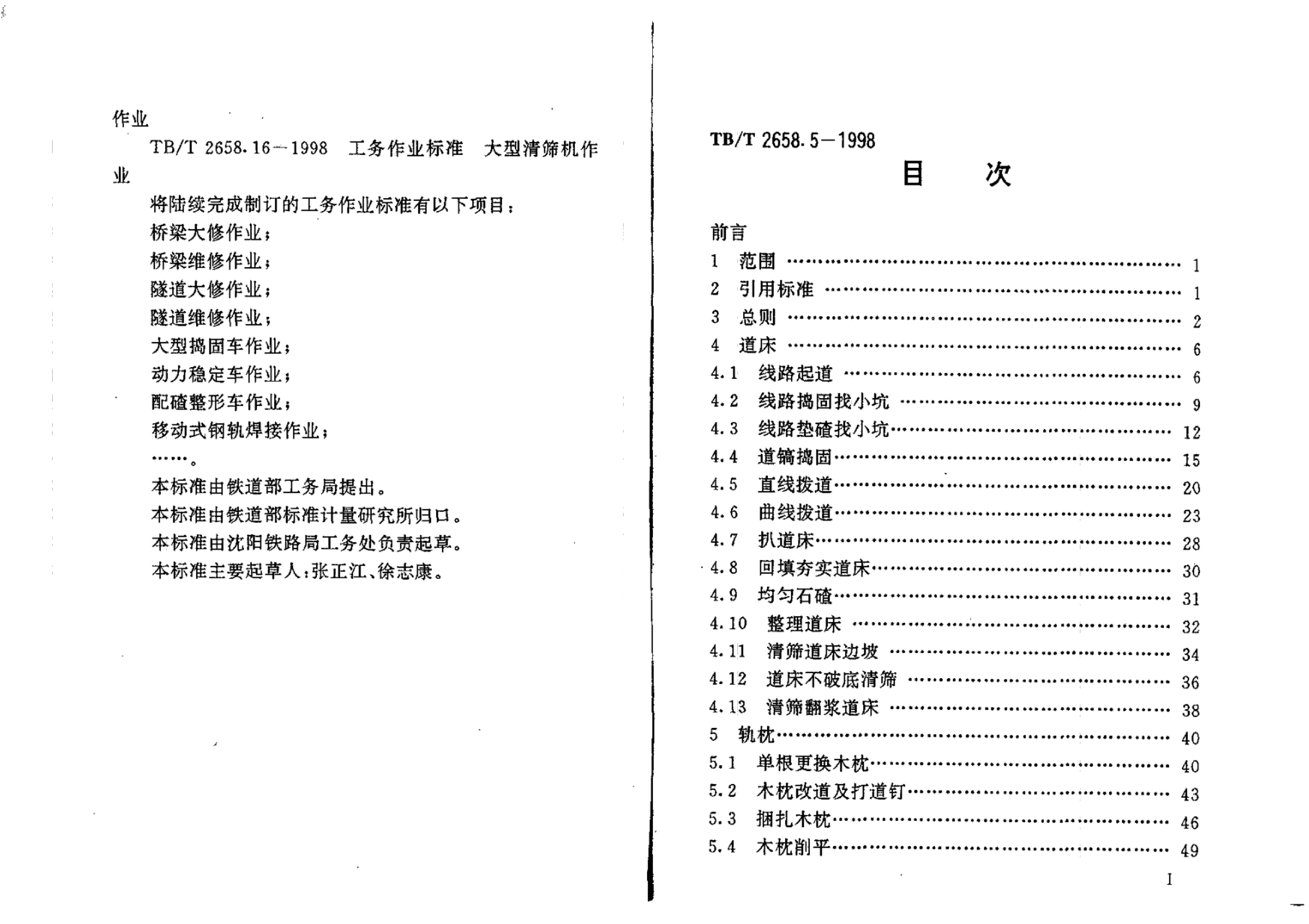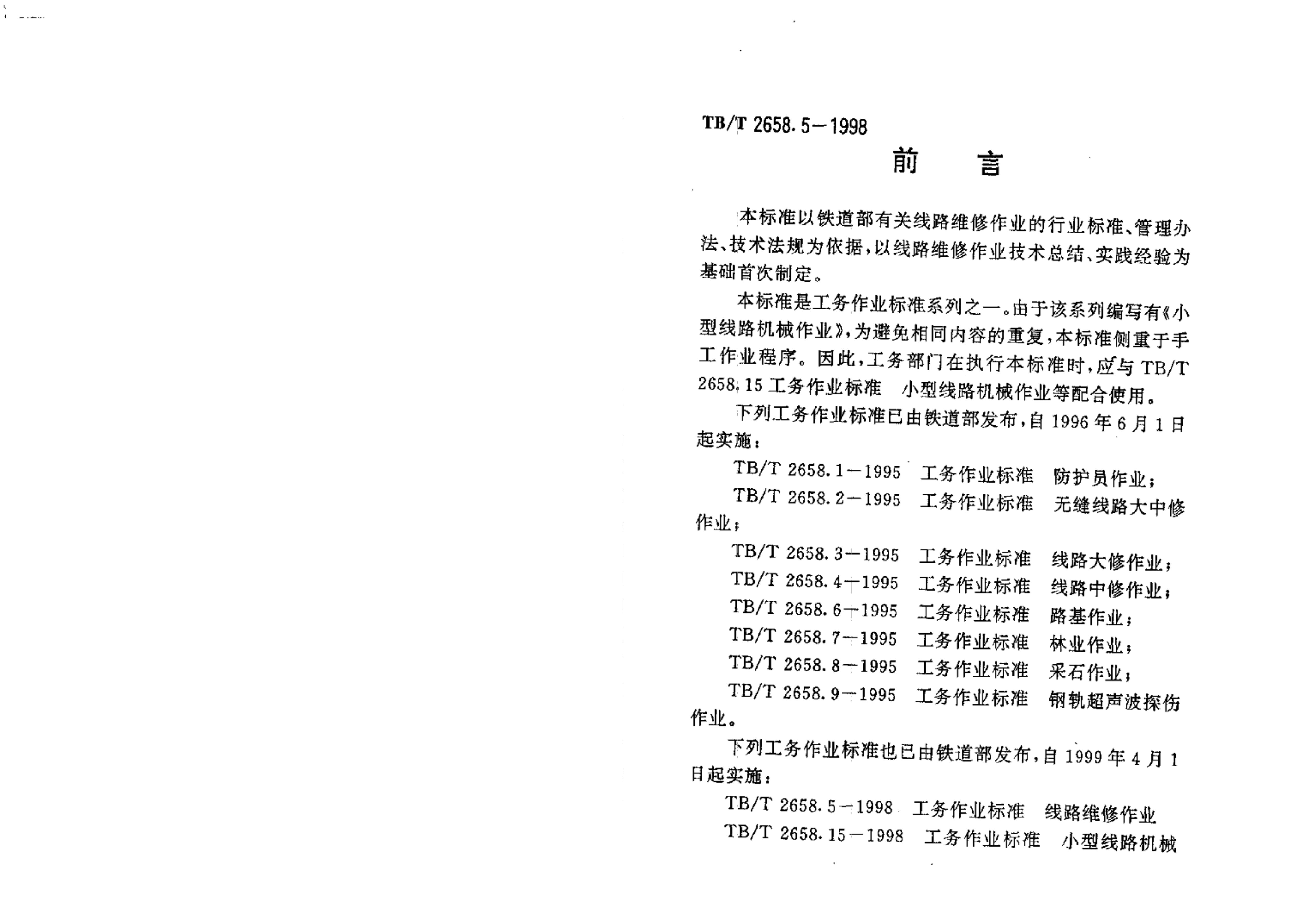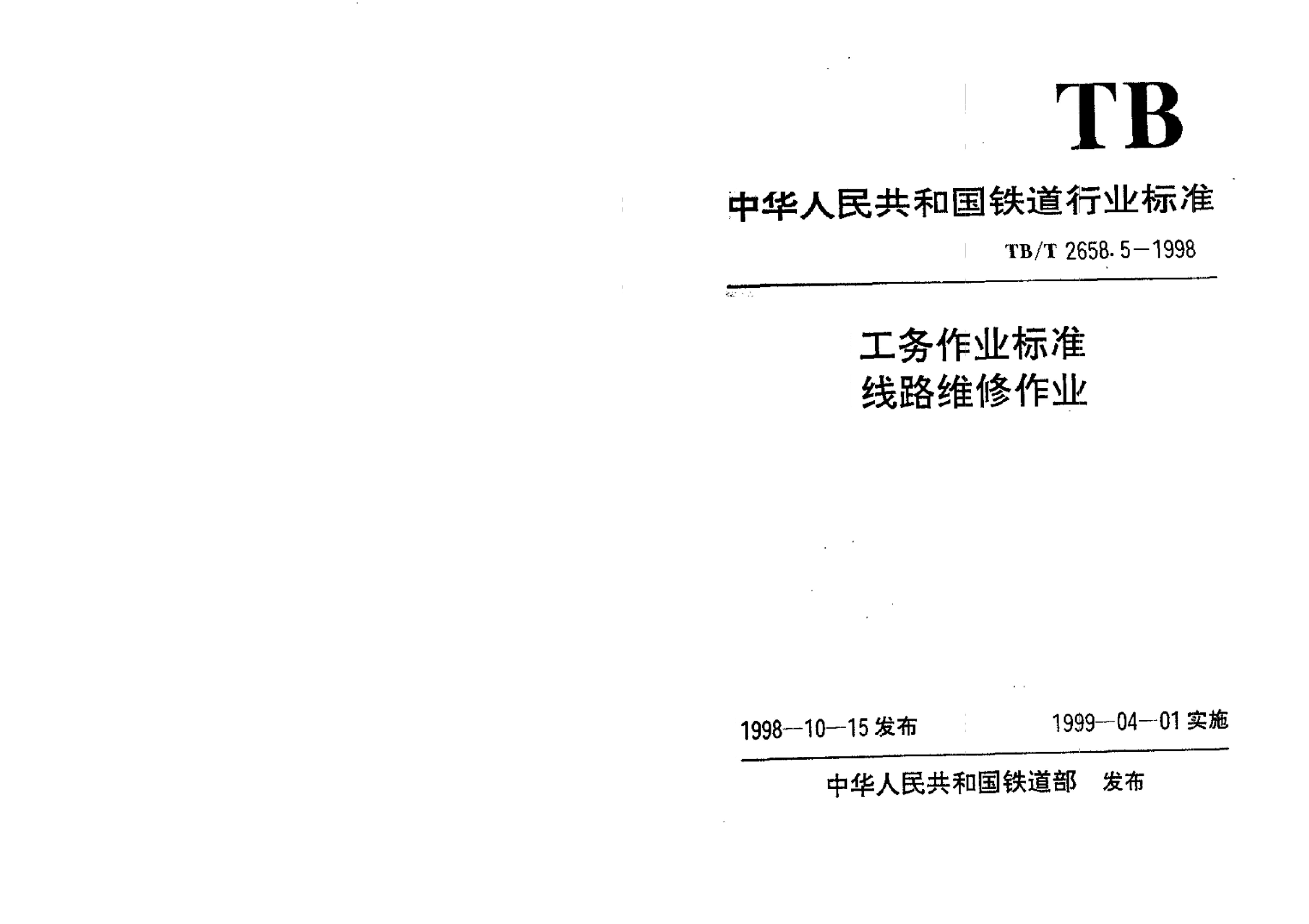 TB/T 2658.5-1998 工务作业标准线路维修作业