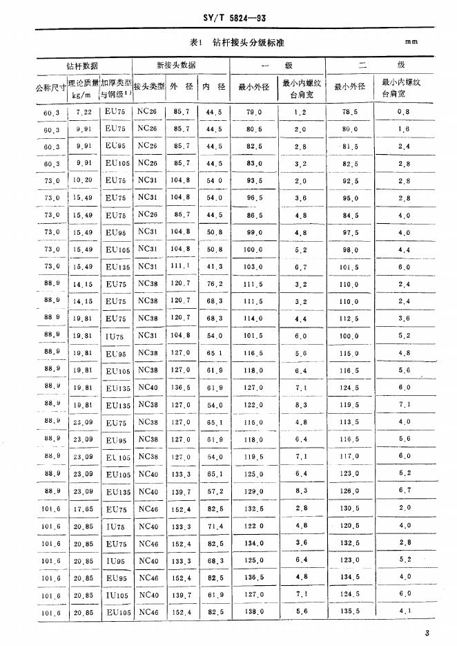SY/T 5824-1993 钻杆分级检验方法