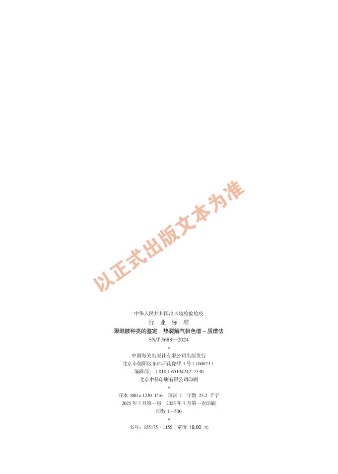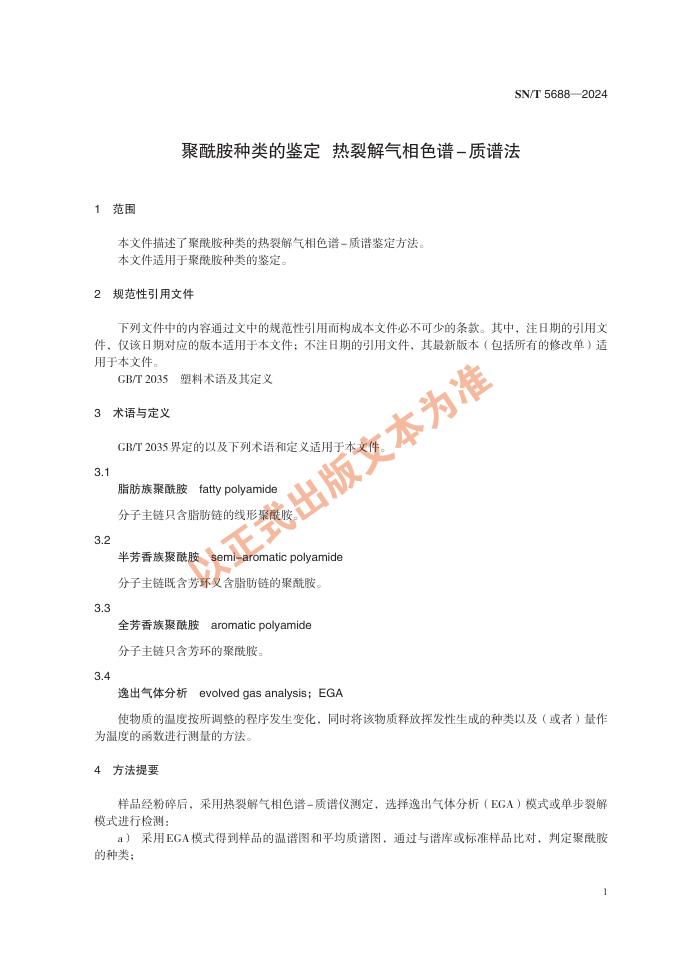 SN/T 5688-2024 聚酰胺种类的鉴定 热裂解气相色谱-质谱法