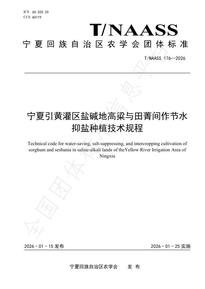 T/NAASS 176-2026 宁夏引黄灌区盐碱地高粱与田菁间作节水抑盐种植技术规程