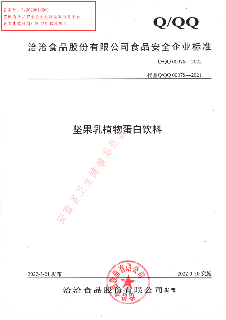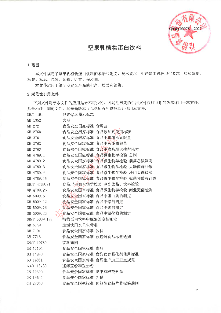 Q/QQ 0007S-2022 坚果乳植物蛋白饮料