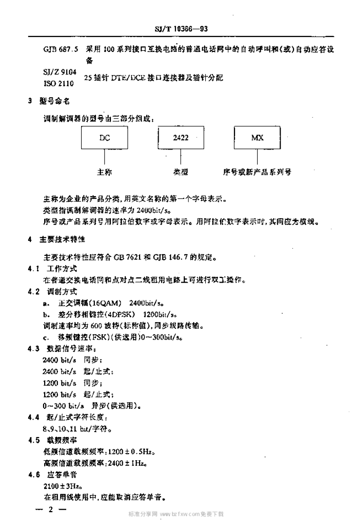 SJ/T 10366-1993 DC2422MX调制解调器技术条件