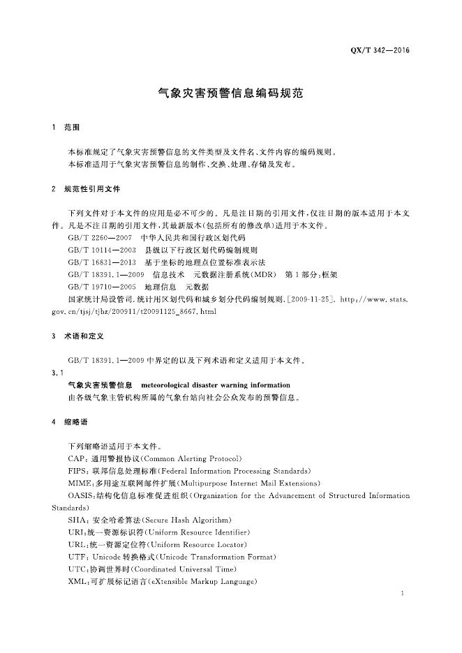 QX/T 342-2016 气象灾害预警信息编码规范