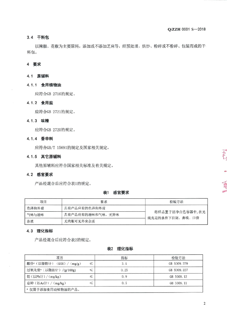 Q/ZZH 0001S-2018 复配调料
