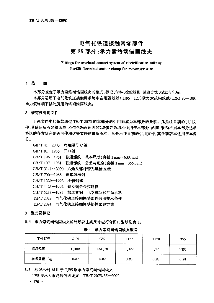 TB/T 2075.35-2002 电气化铁道接触网零部件 第35部分:承力索终端锚固线夹