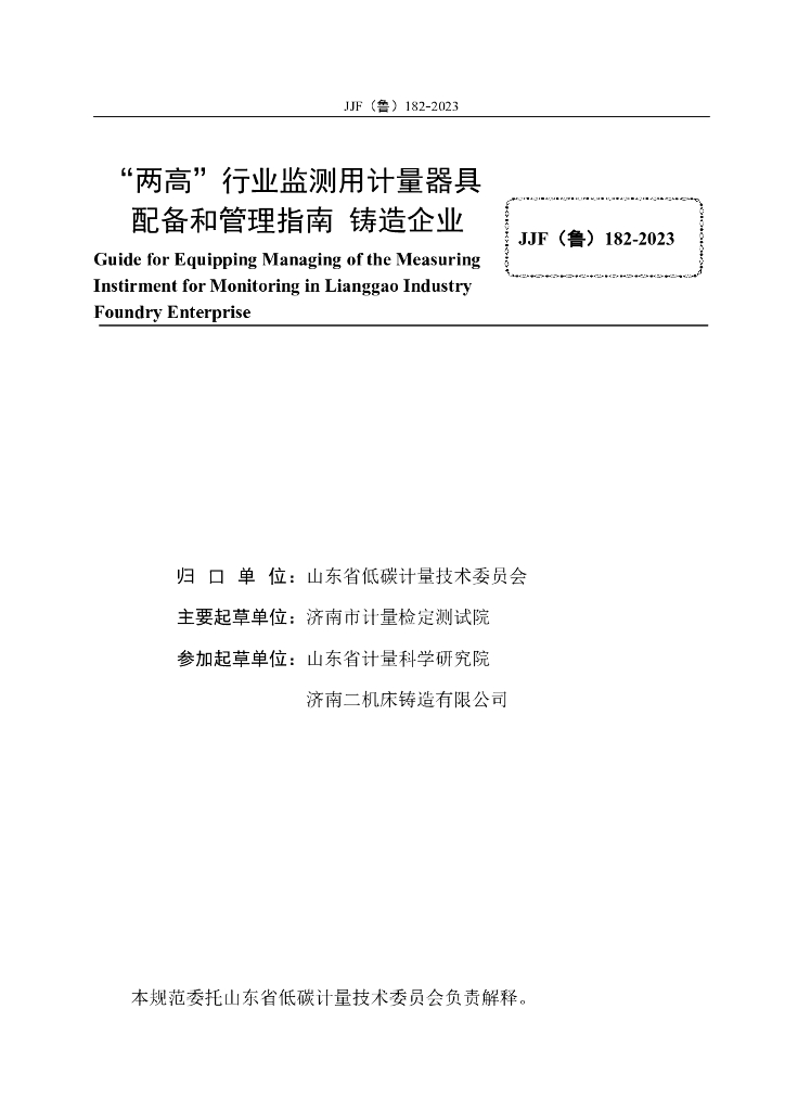 JJF(鲁)182-2023 “两高”行业监测用计量器具配备和管理指南 铸造企业