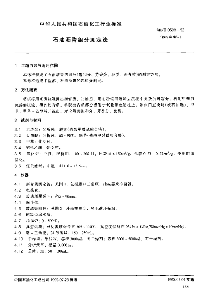 SH/T 0509-1992 油沥青组分测定法