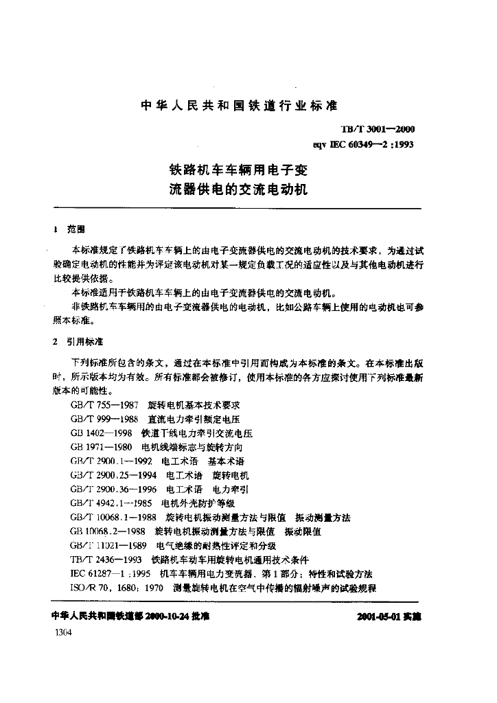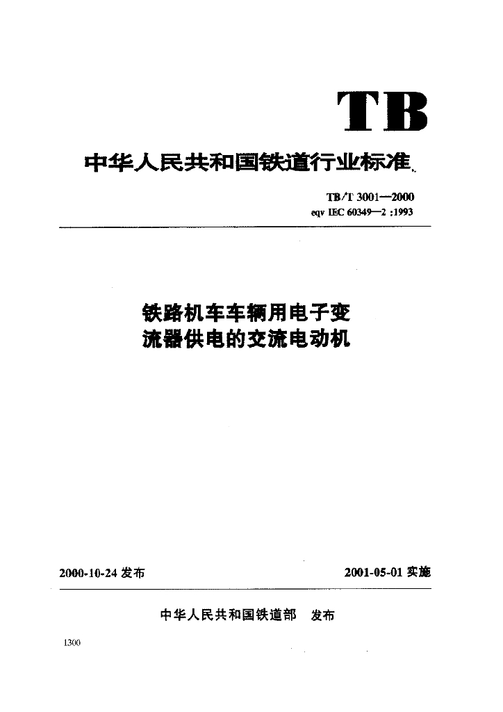 TB/T 3001-2000 铁路机车车辆用电子变流器供电的交流电动机