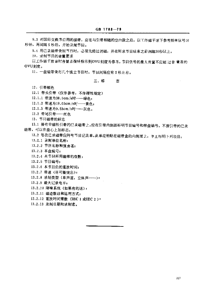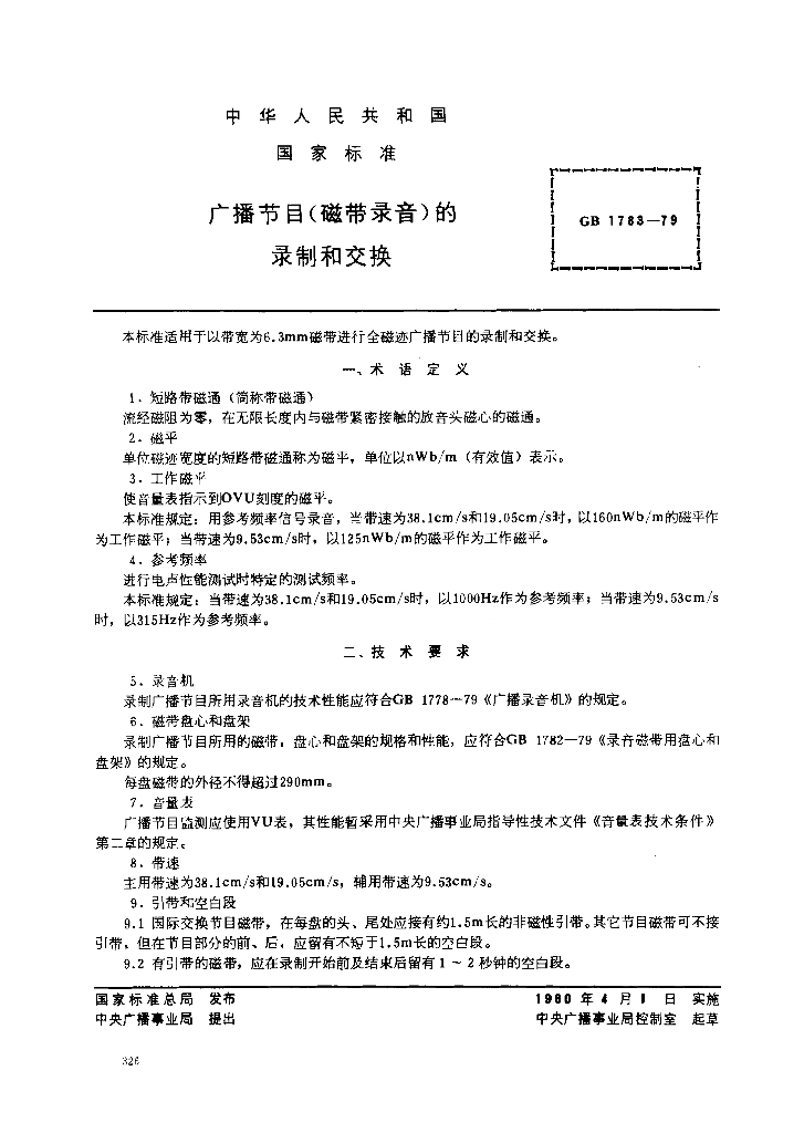 GB 1783-1979 广播节目(磁带录音)的录制和交换