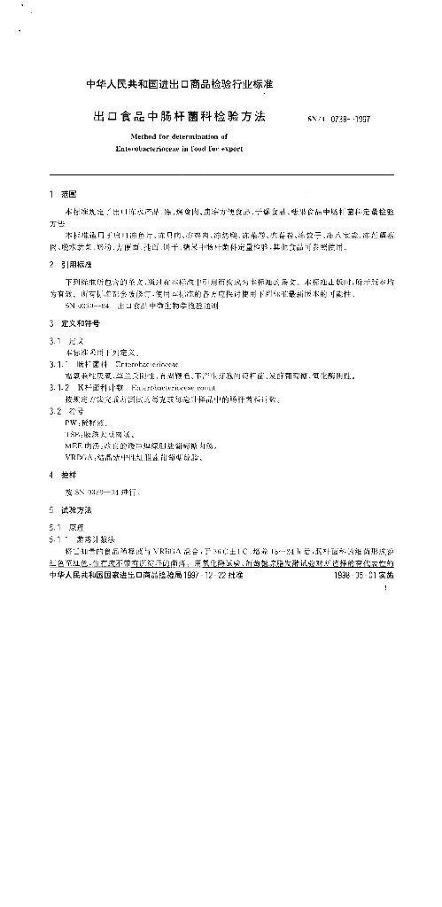 SN/T 0738-1997 出口食品中肠杆菌科检验方法