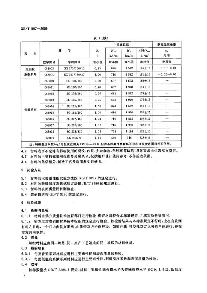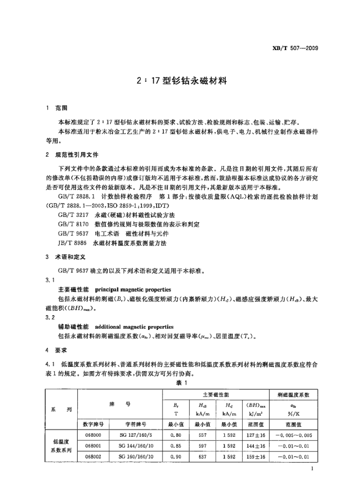 XB/T 507-2009 2:17型钐钴永磁材料
