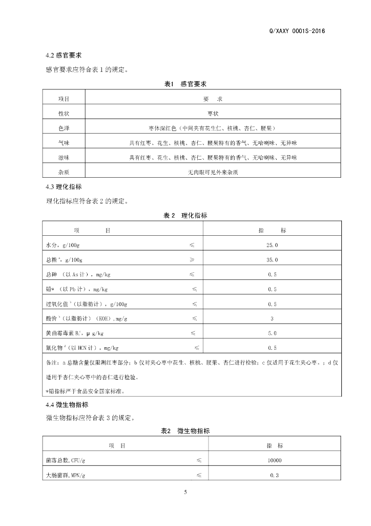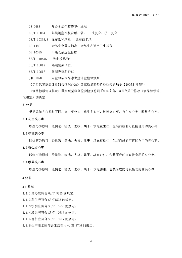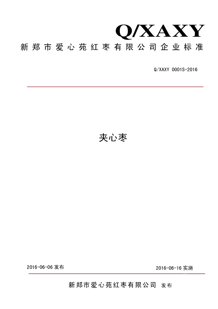 Q/XAXY 0001S-2016 新郑市爱心苑红枣有限公司 夹心枣