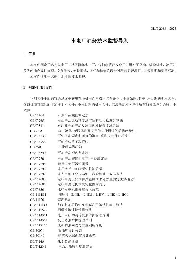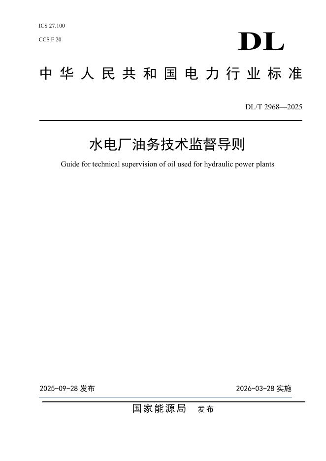 DL/T 2968-2025 水电厂油务技术监督导则