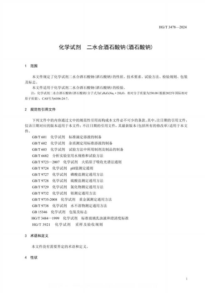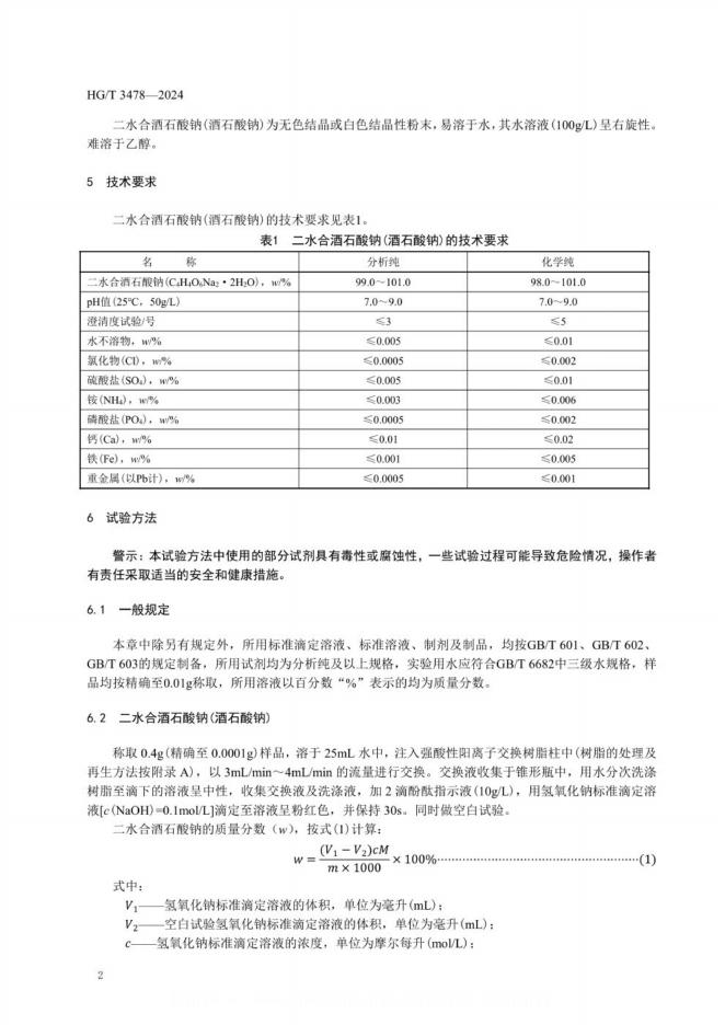 HG/T 3478-2024 化学试剂 二水合酒石酸钠(酒石酸钠)