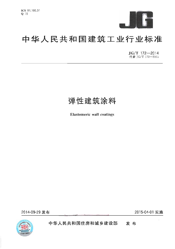 JG/T 172-2014 弹性建筑涂料