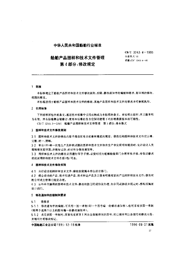 CB/T 3243.4-1995 船舶产品图样和技术文件管理 第4部分:修改规定