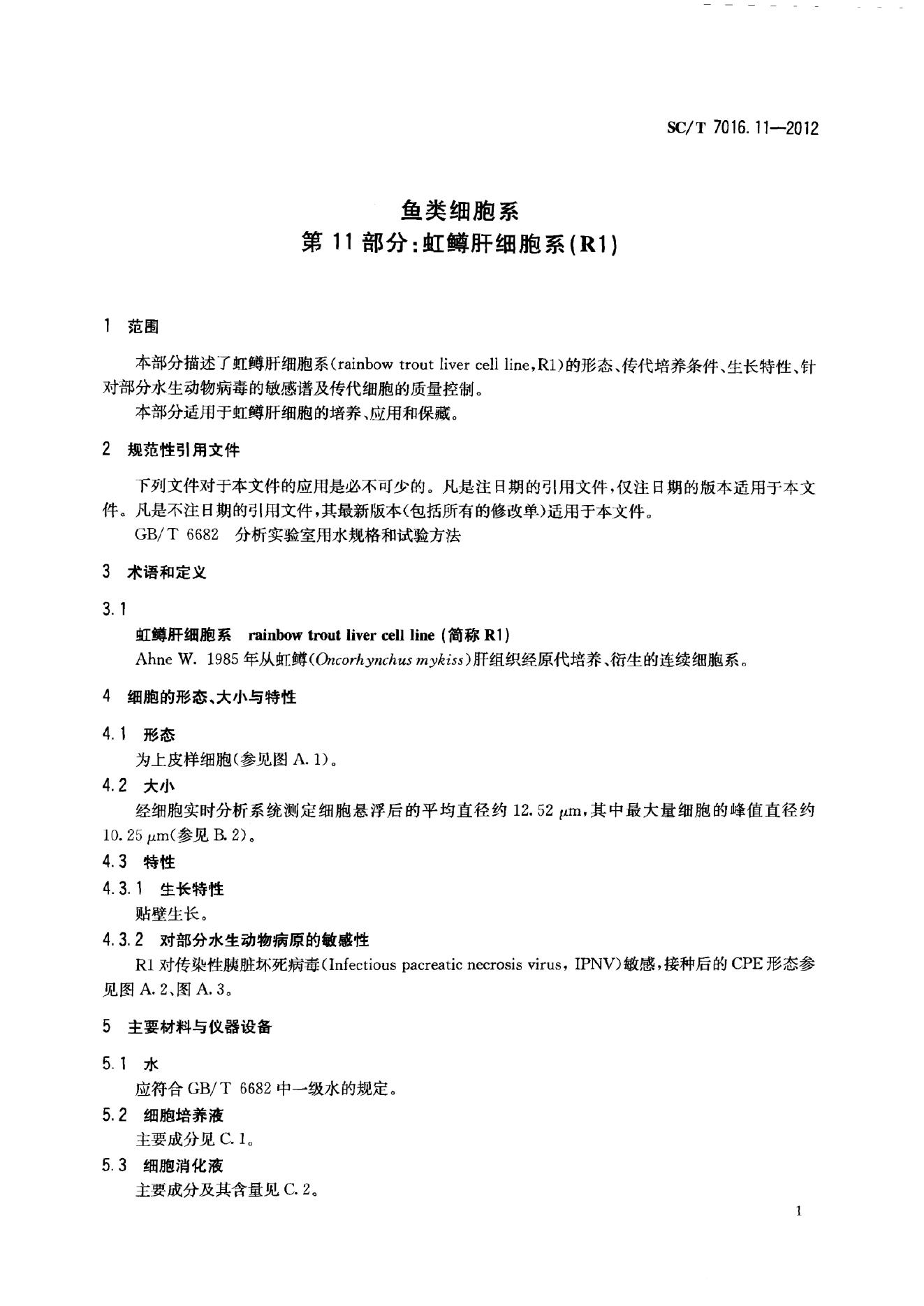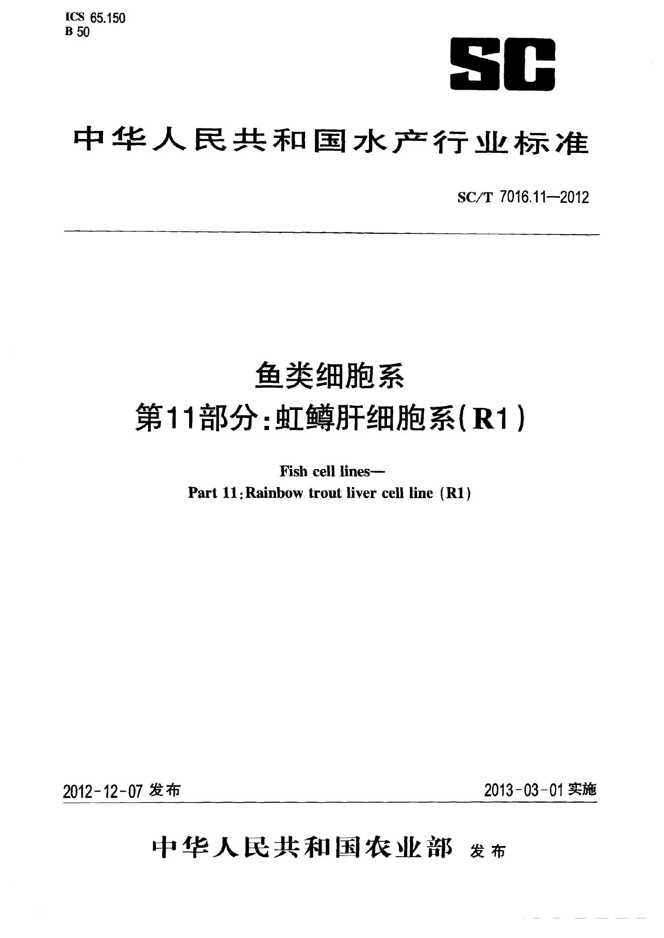 SC/T 7016.1-2012 鱼类细胞系 第1部分:胖头鱥肌肉细胞系(FHM)