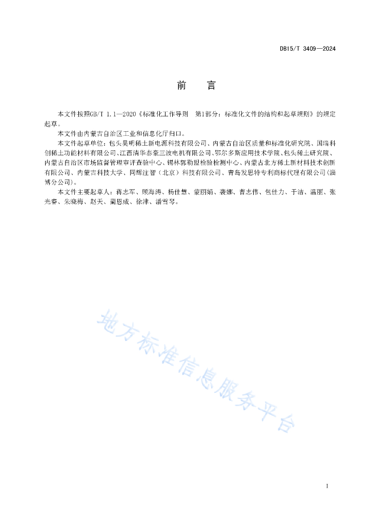 包头昊明稀土新电源科技有限公司、内蒙古自治区质量和标准化研究院、国瑞科创稀土功能材料有限公司、江西清华泰豪三波电机有限公司、鄂尔多斯应用技术学院、包头稀土研究院、内蒙古自治区市场监督管理审评查验中心、锡林郭勒盟检验检测中心、内蒙古北方稀土新材料技术创新有限公司、内蒙古科技大学、同辉注智(北京)科技有限公司、青岛发思特专利商标代理有限公司(淄博分公司)