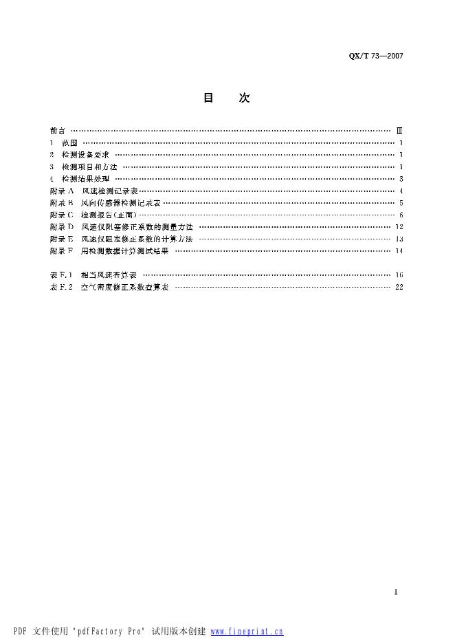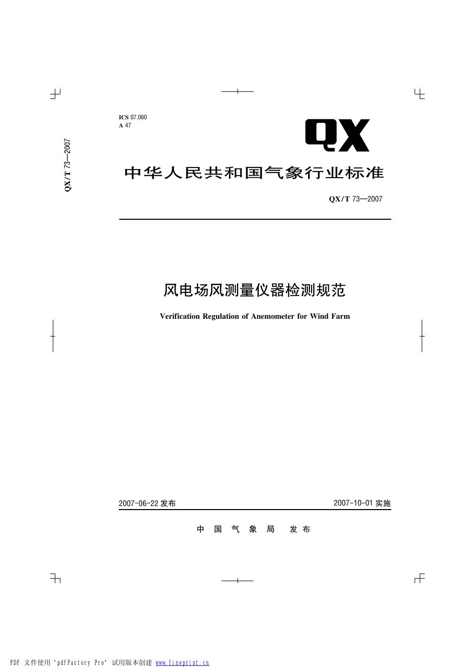 QX/T 73-2007 风电场风测量仪器检测规范