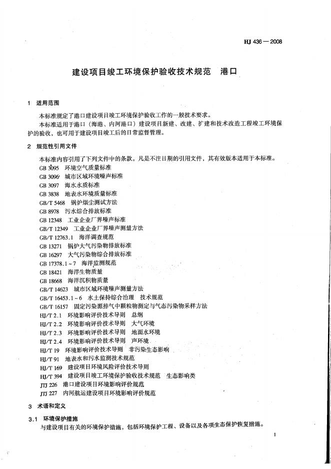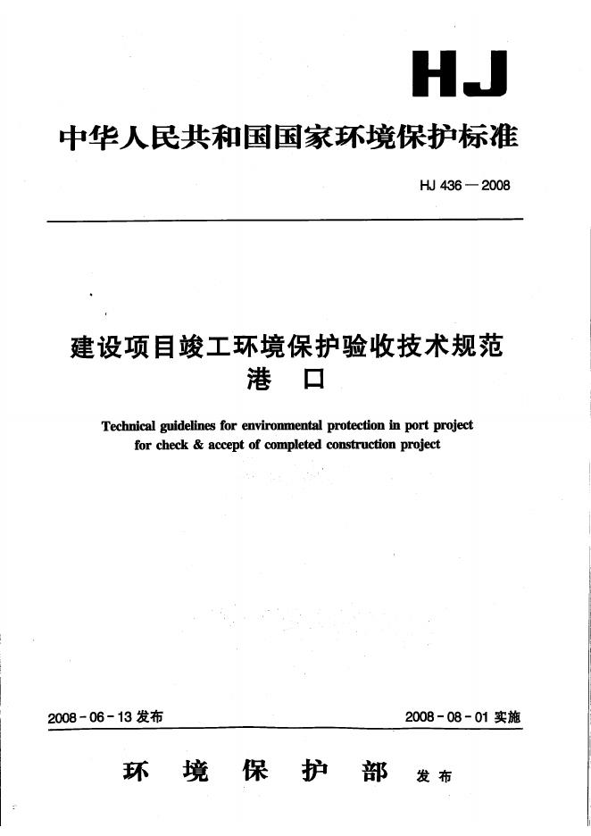 HJ 436-2008 建设项目竣工环境保护验收技术规范 港口