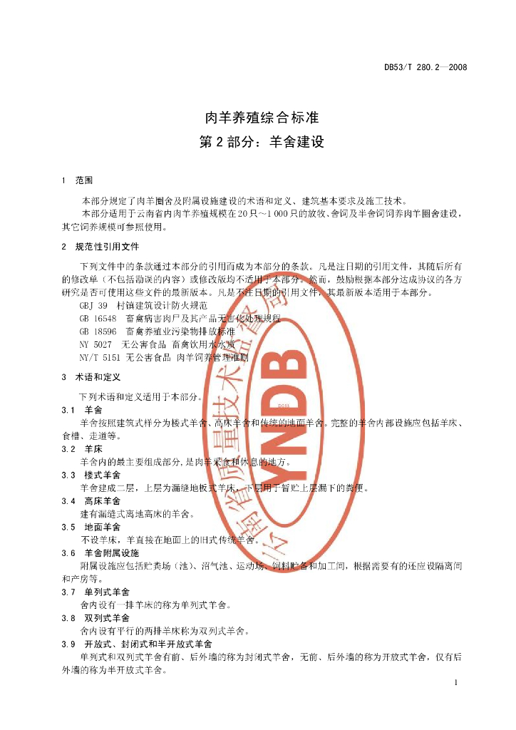 DB53/T 280.2-2008 肉羊养殖综合标准 第2部分:羊舍建设
