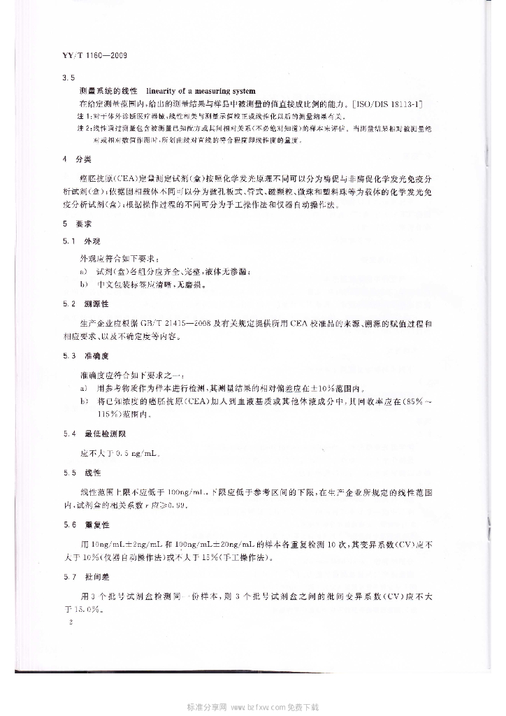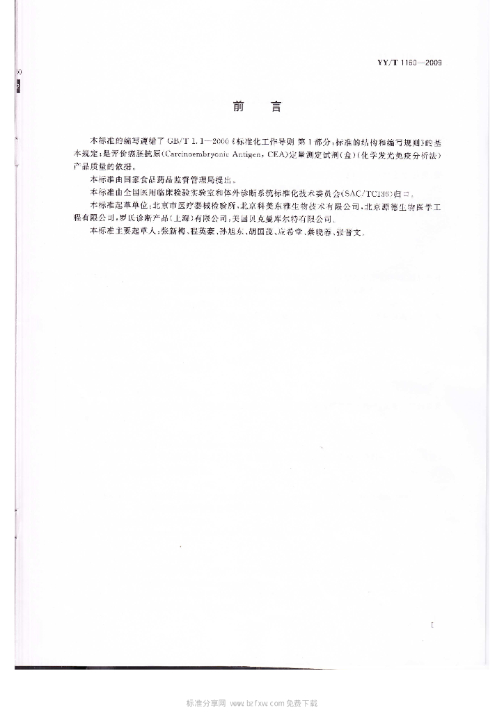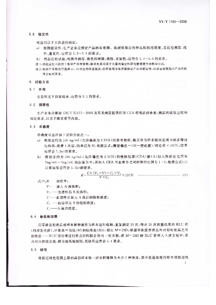 YY/T 1160-2009 癌胚抗原(CEA)定量测定试剂(盒)(化学发光免疫分析法)