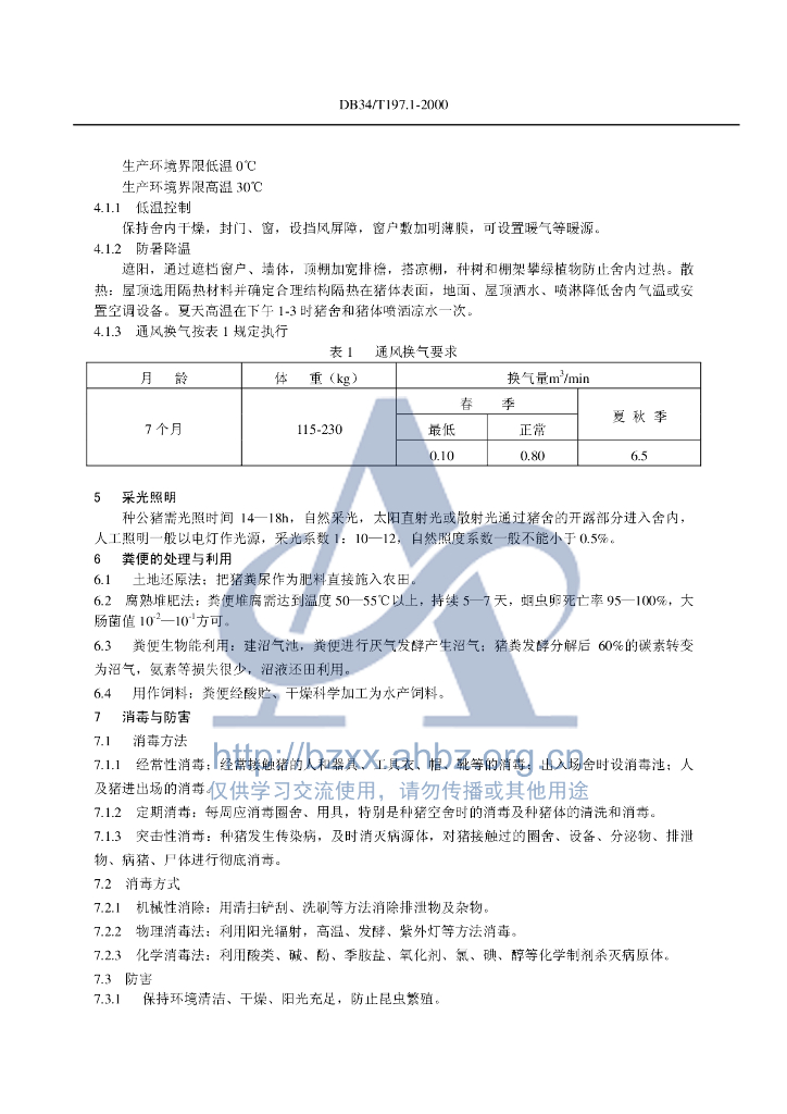 DB34/T 197.1-2000 种公猪生产环境与管理