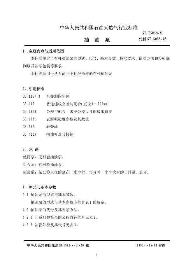 SY/T 5059-1991 抽油泵