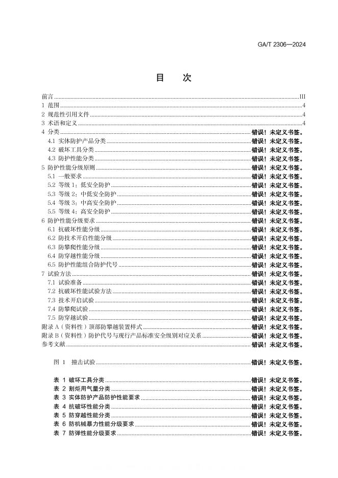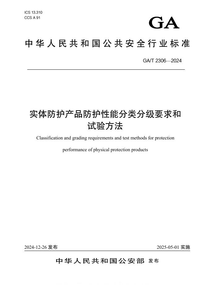 GA/T 2306-2024 实体防护产品防护性能分类分级要求和试验方法