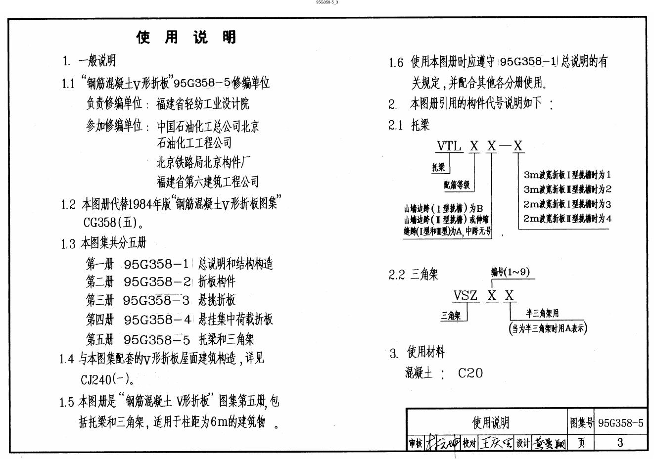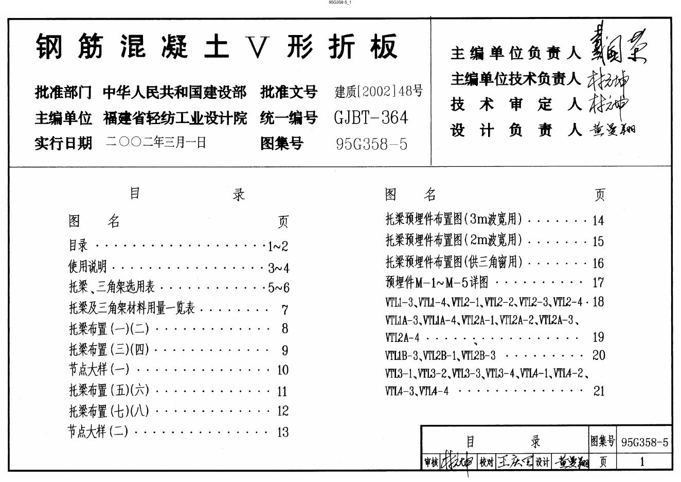 95G358-5 钢筋混凝土V形折板(拖梁和三角架)图集