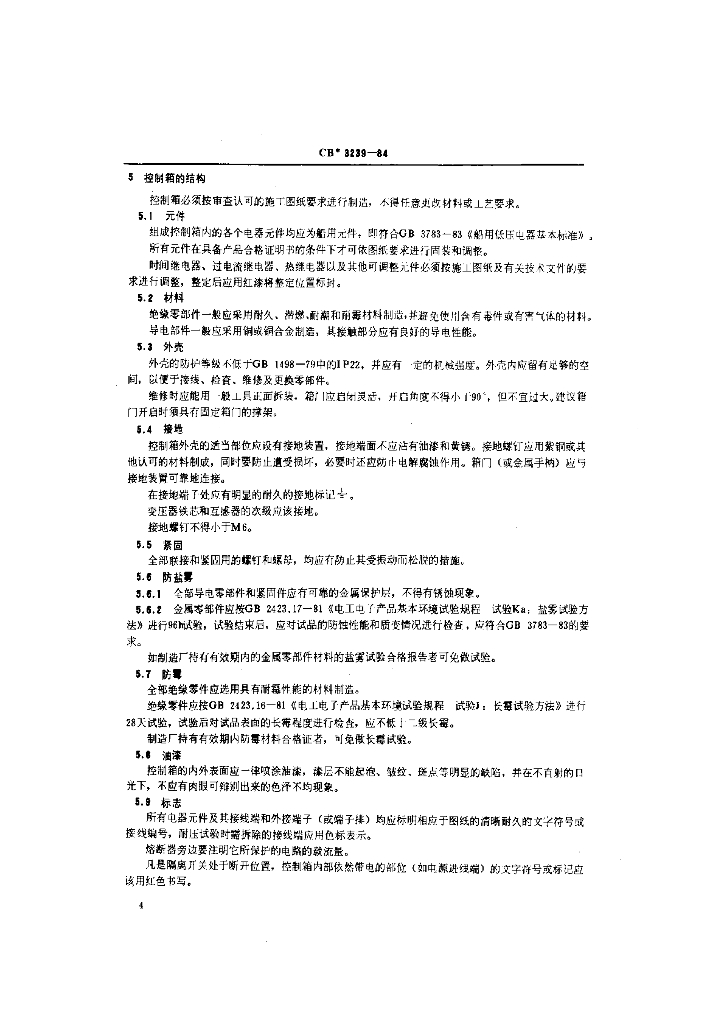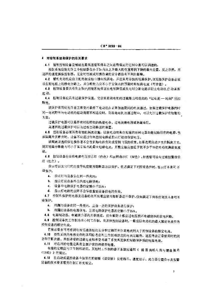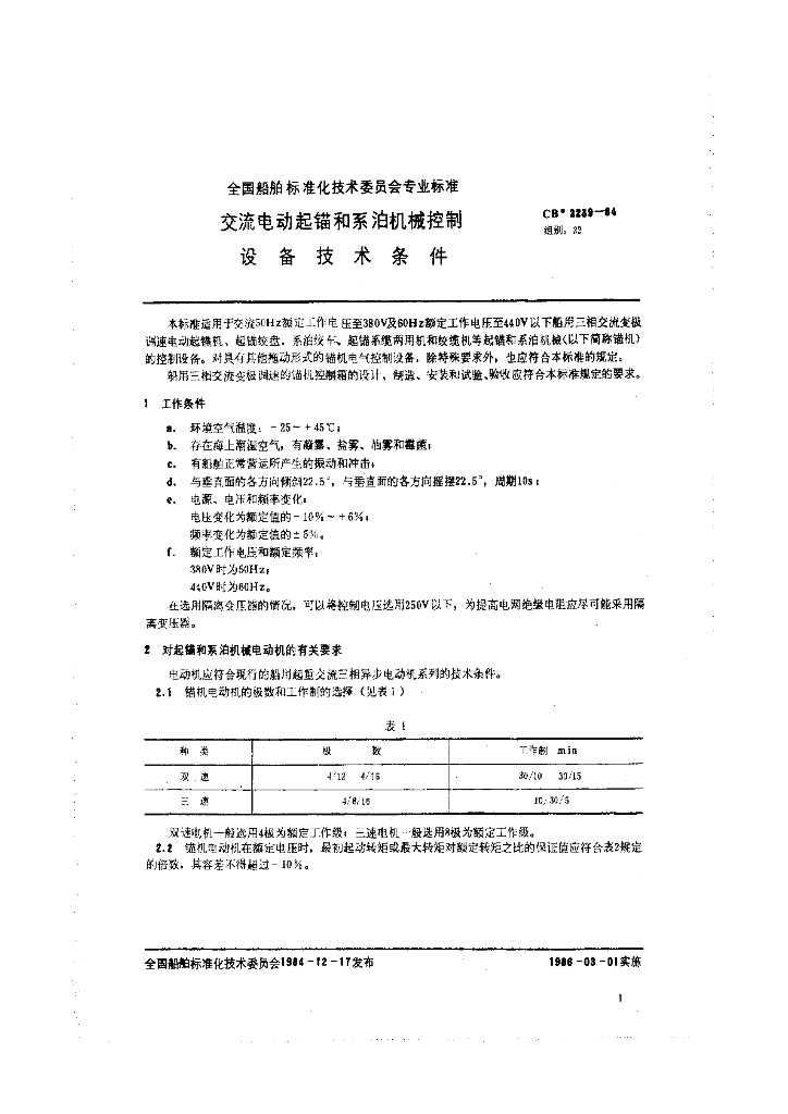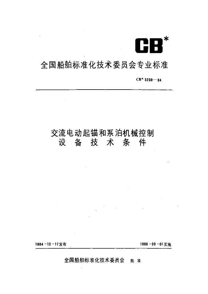CB 3239-1984 交流电动起锚和系泊机械控制设备技术条件