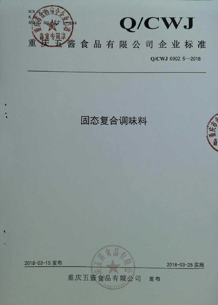 Q/CWJ 0002S-2018 固态复合调味料