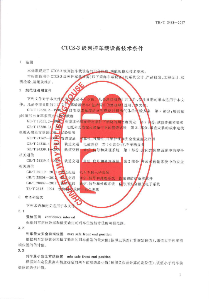 TB/T 3483-2017 CTCS-3级列控车载设备技术条件