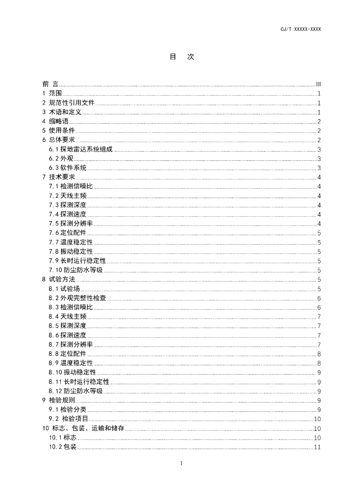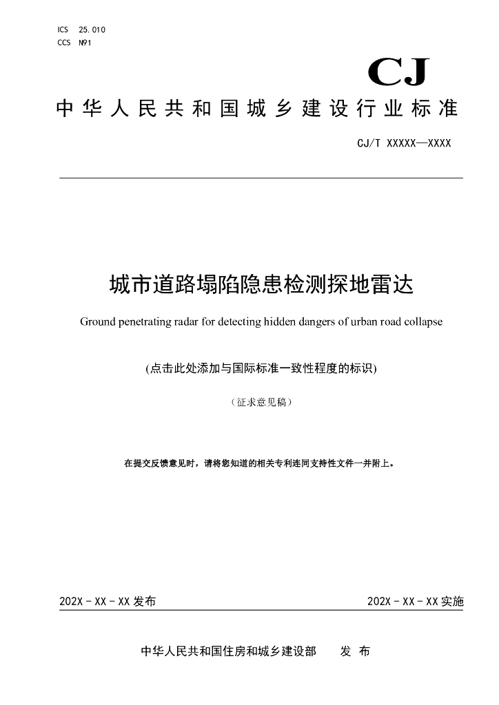 CJ/T XXXXX-XXXX 城市道路塌陷隐患检测探地雷达(征求意见稿)