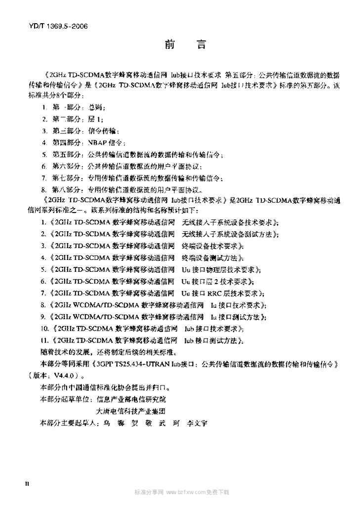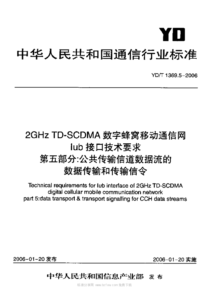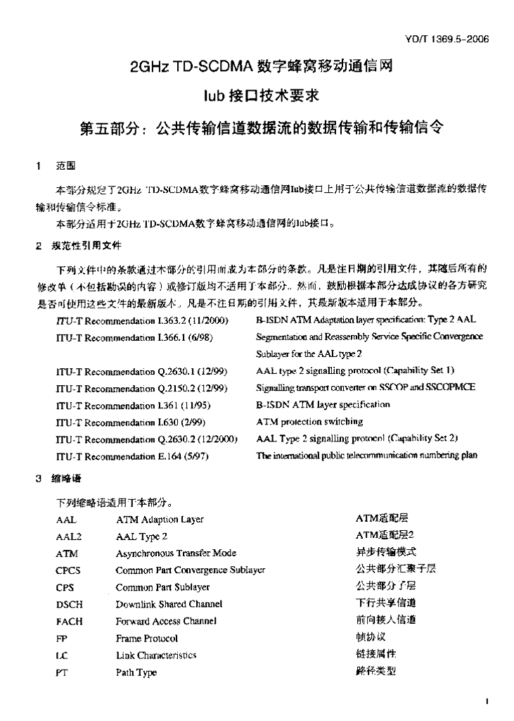 YD/T 1369.5-2006 2GHz TD-SCDMA 数字蜂窝移动通信网 lub 接口技术要求 第五部分:公共传输信道数据流的数据传输和传输信令