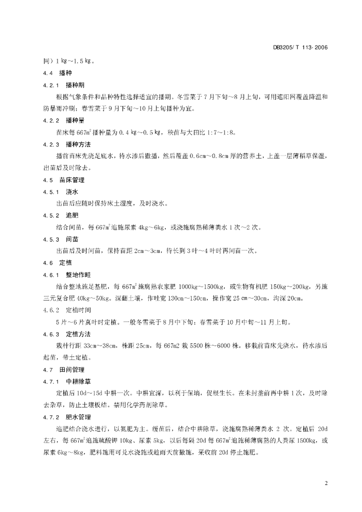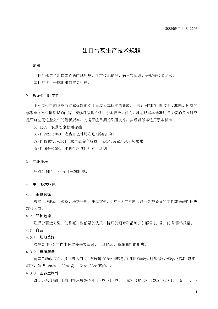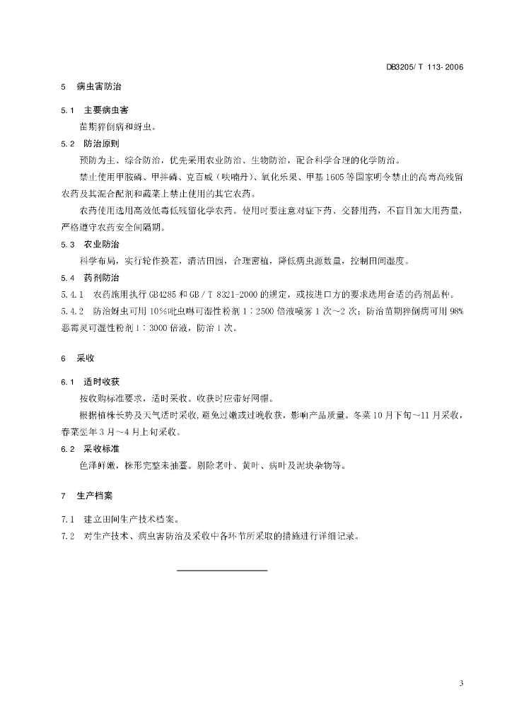 DB3205/T 113-2006 出口雪菜生产技术规程