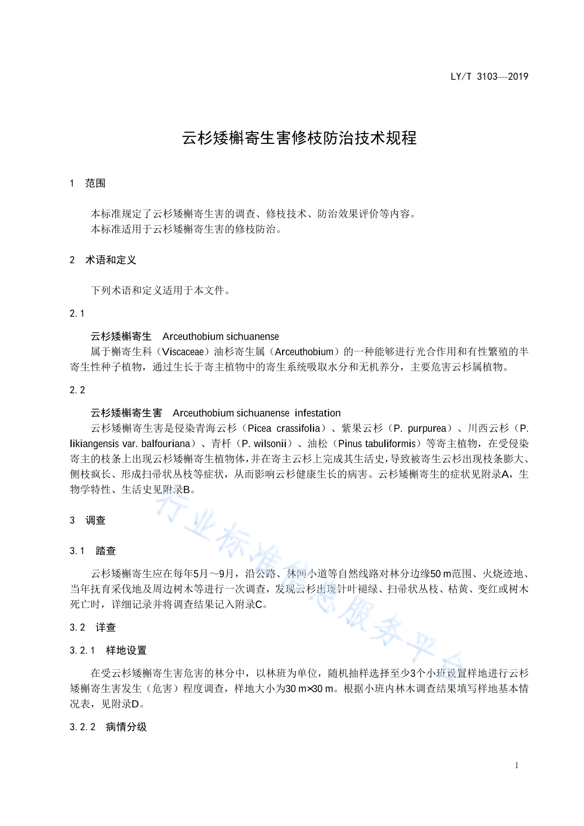 LY/T 3103-2019 云杉矮槲寄生害修枝防治技术规程