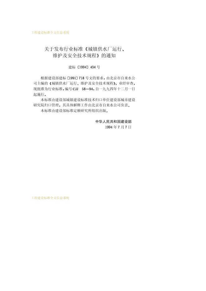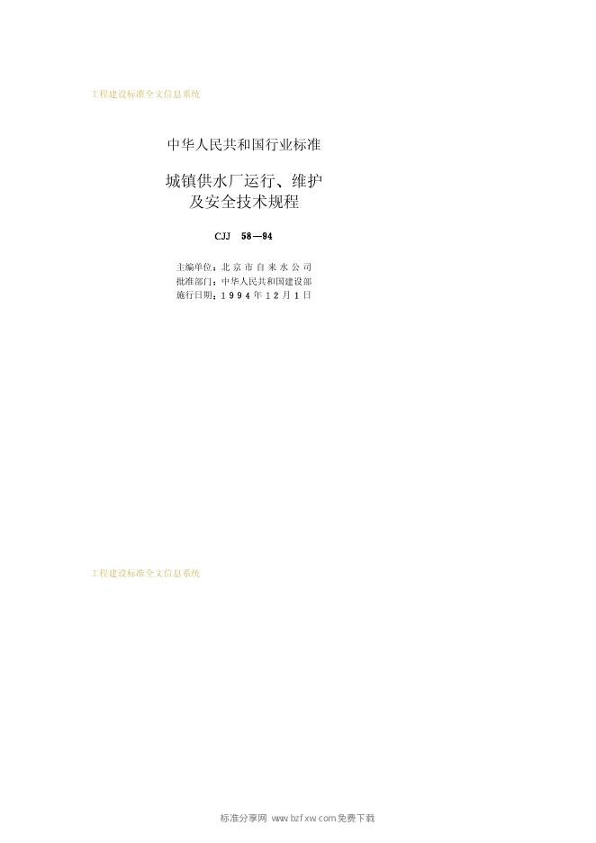 CJJ 58-1994 城镇供水厂运行、维护及安全技术规程