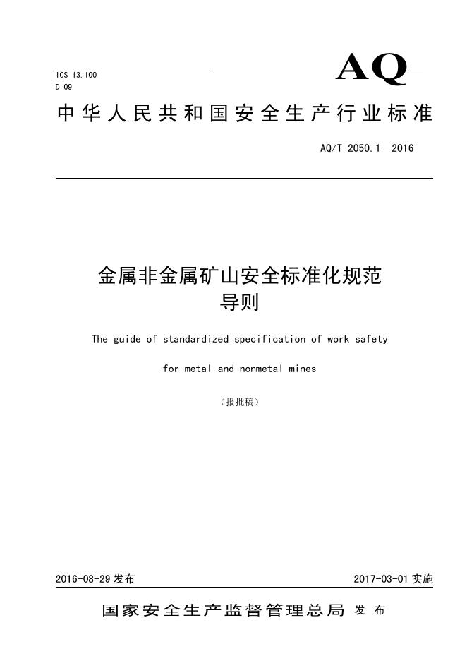 AQ/T 2050.1-2016 金属非金属矿山安全标准化规范 导则