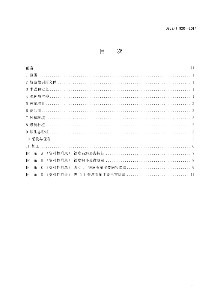 DB52/T 920-2014 铁皮石斛人工种植技术规程