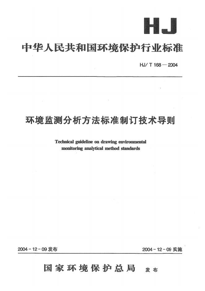 HJ/T 168-2004 环境监测分析方法标准制订技术导则