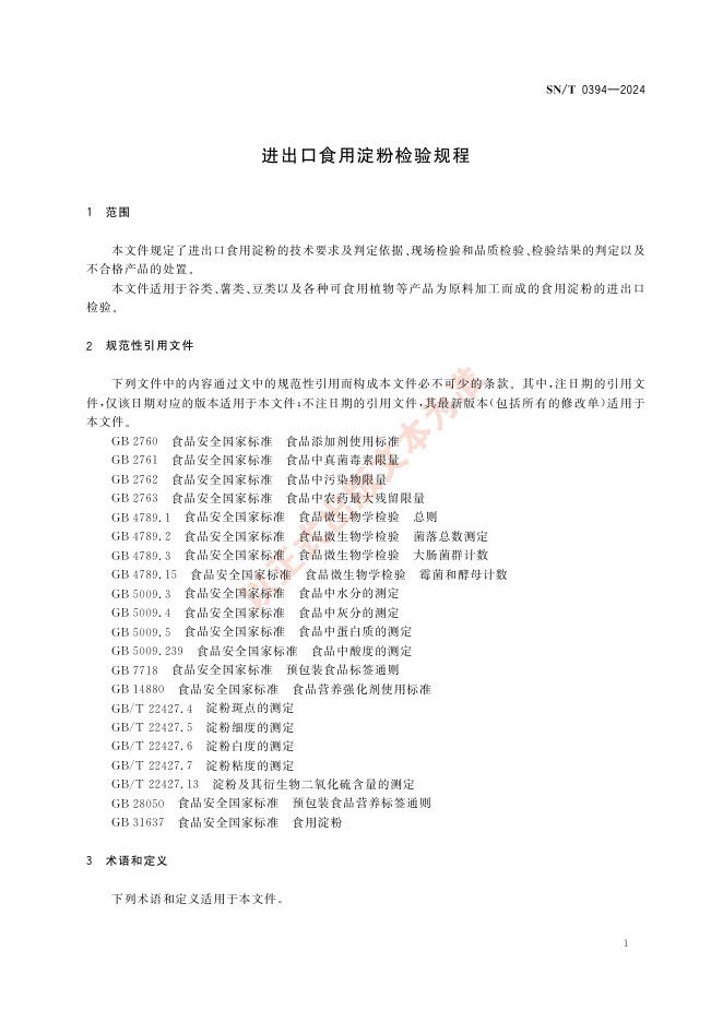 SN/T 0394-2024 进出口食用淀粉检验规程