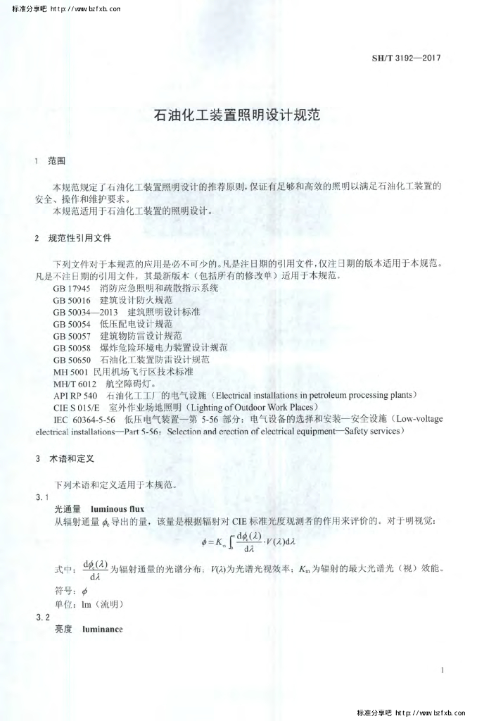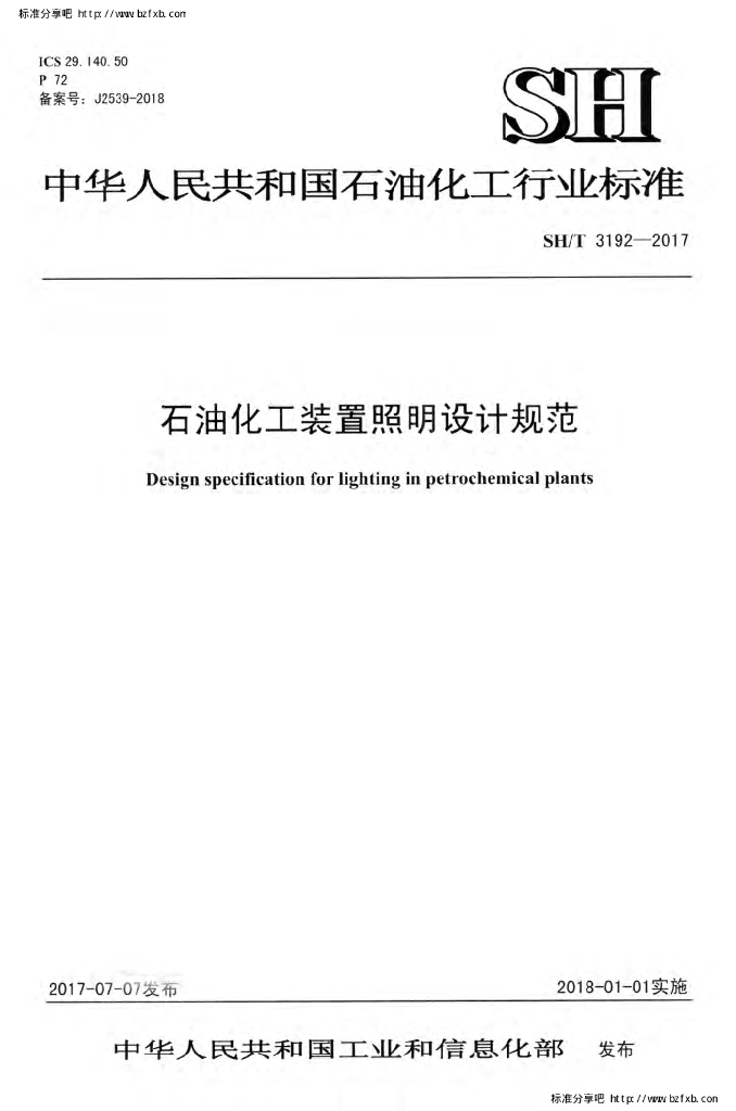 SH/T 3192-2017 石油化工装置照明设计规范