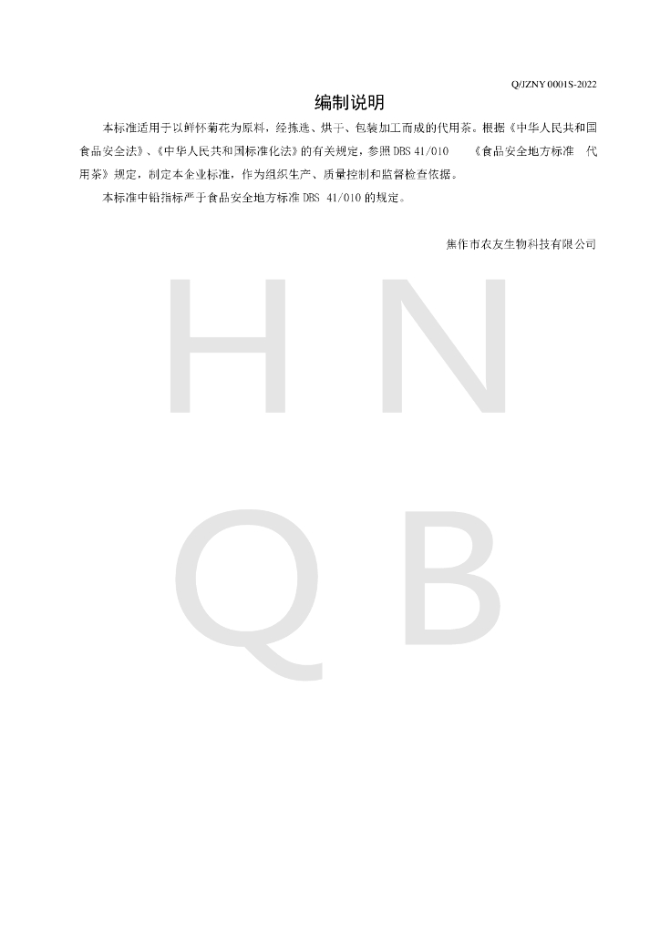 Q/JZNY 0001S-2022 怀菊花代用茶