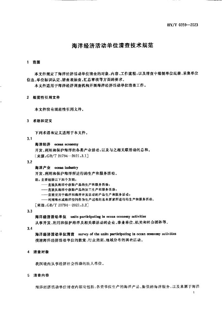 HY/T 0359-2023 海洋经济活动单位清查技术规范