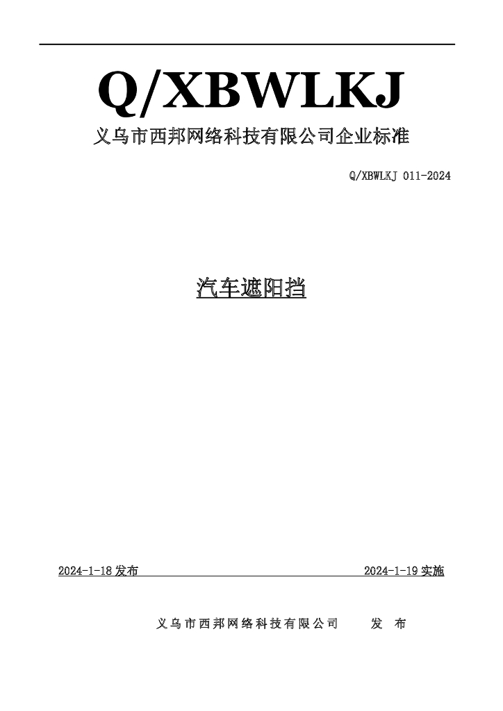 Q/XBWLKJ 011-2024 汽车遮阳挡