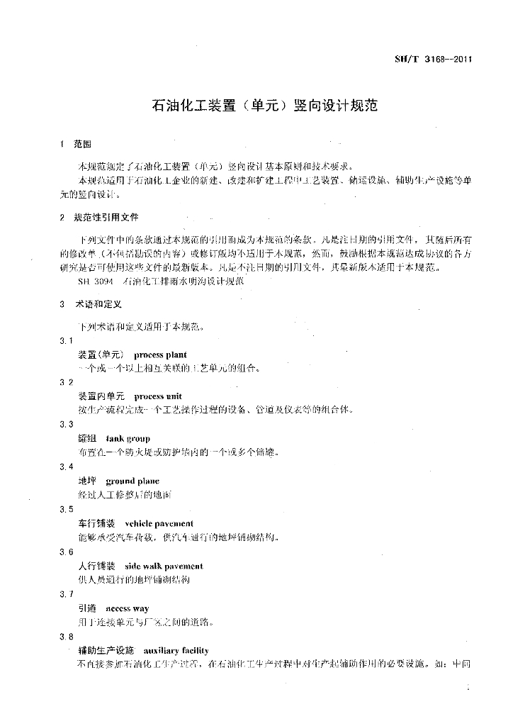 SH/T 3168-2011 石油化工装置(单元)竖向设计规范