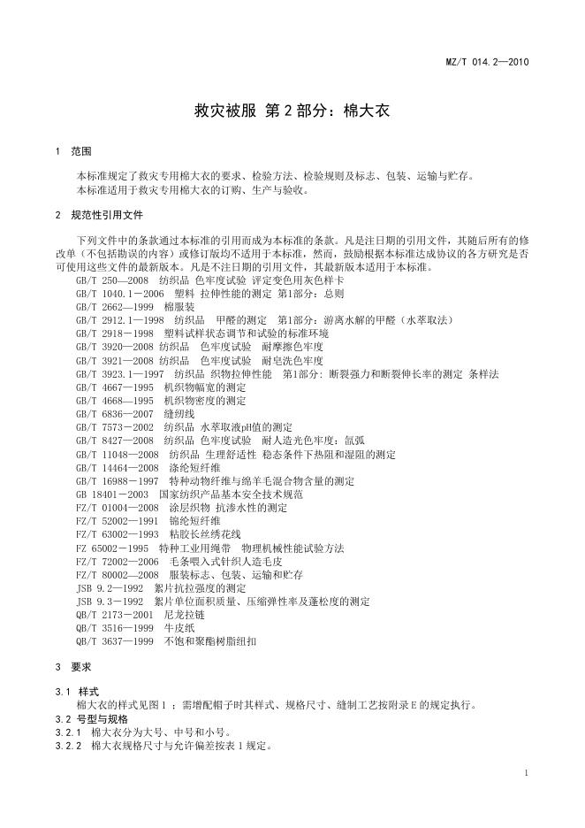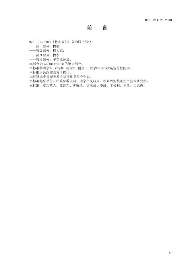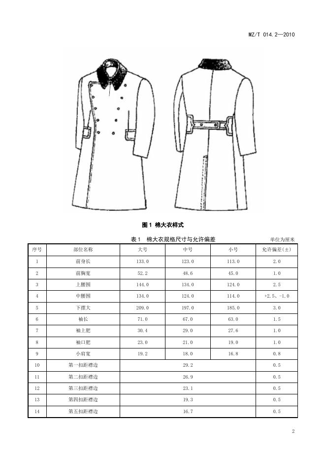 MZ/T 014.2-2010 救灾被服 第2部分:棉大衣
